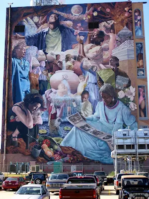 To the AT&T building (accessible from either exit 19a or 19b in Shreveport not to far from the Eldorado's or Sam's Town Hotel) which has large murals painted on its sides...